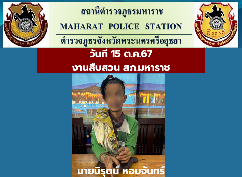 เจ้าพนักงานผู้จับกุม: 👮♀️ นำโดย พ.ต.ท.พัลลภ สุวรรณไตรย์ สว.สส.สภ.มหาราช พร้อมเจ้าหน้าที่ตำรวจสายสืบ สภ.มหาราช