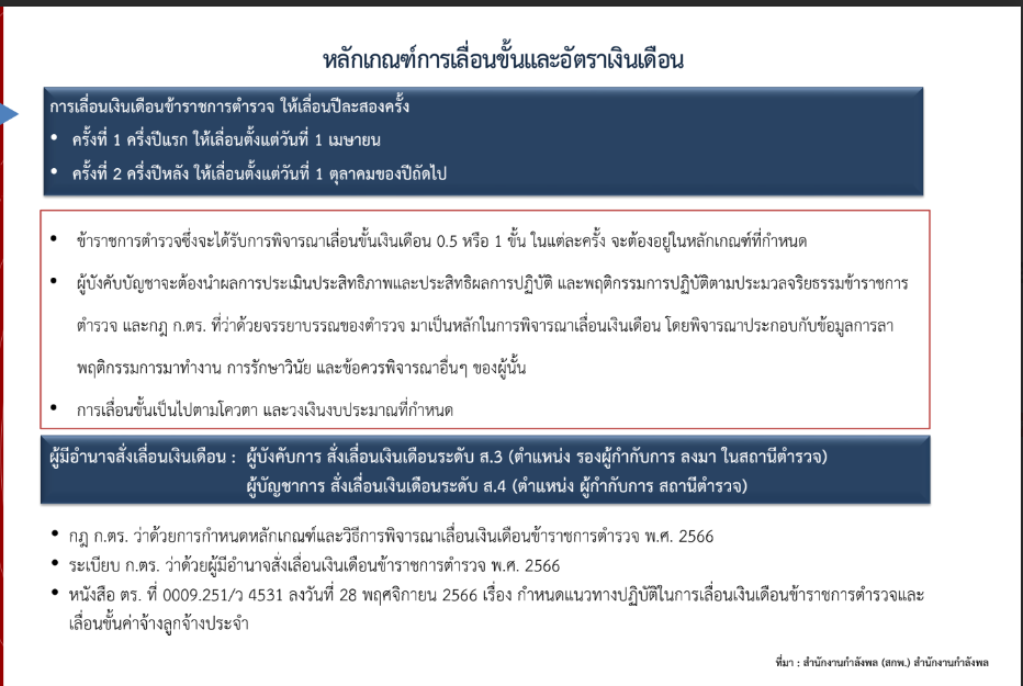 แนวทางปฏิบัติการเลื่อนเงินเดือนข้าราชการตำรวจและเลื่อนขั้นค่าจ้างลูกจ้างประจำ ตามหนังสือ ตร.ที่ 0009.251/ว 4531 ลง 28 พ.ย.66